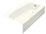 Drain:Drain on Right Side, Finish/Color:Biscuit With a functional design and elegant styling, the Villager is Kohler's most popular bath. Crafted from durable Kohler Cast Iron for years of durability. Includes a 4' edge that provides room for bath supplies. Faucet and drain not included ADA compliant when installed with seat at head end. 60-InchL by 34-1/4-InchW by 14-InchH Our most popular bath Integral apron for quick installation Kohler Cast Iron Designed for one-person bathing